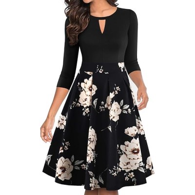 Women's Vintage Floral Flared A-Line Swing Casual Party Dresses with Pockets
