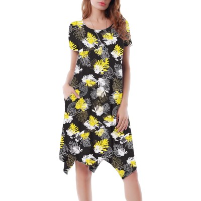 Womens Casual Tshirt Dresses Short Sleeve Summer Beach Dress Swing Flowy Mini Dress