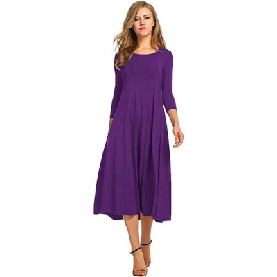 Women's 3/4 Sleeve A-line and Flare Midi Long Dress