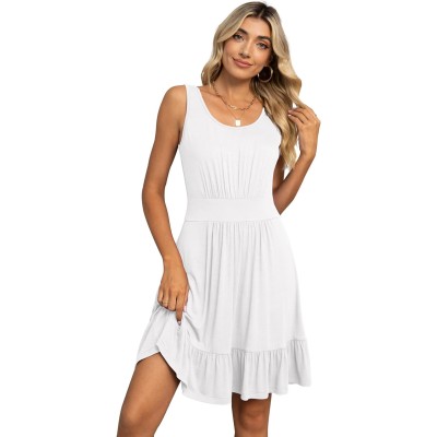 Women's Summer Casual U Neck Sundresses Pleated Knee Length Sleeveless Tank Dress