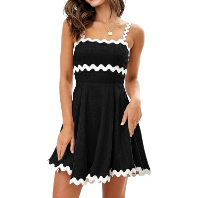 Women's Summer Mini Dress Casual Linen Dress Cocktail Dresses for Women Sundresses with Ric Rac Trim