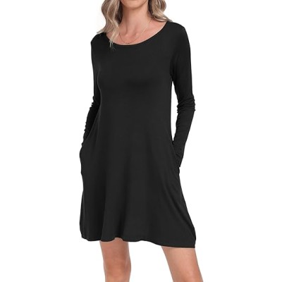 Women's Long Sleeve Pockets Casual Loose T-Shirt Dresses