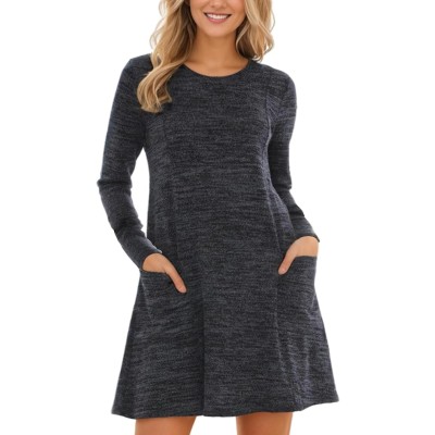 Women Knit Long Sleeve Mini A Line Flowy Winter Dresses with Pockets