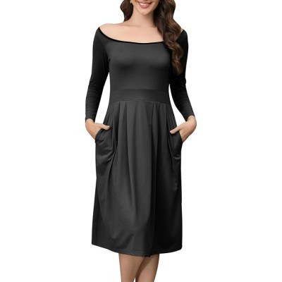 Women 2024 Loose Swing Knee Length Scoop Neck Trendy Casual Fall Dresses with Pockets