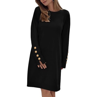 Womens 2024 Fall Sweater Dress Crewneck Long Sleeve Pullover Sweaters Casual Cute Loose Fit Knit Short Dresses