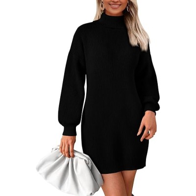 Women's Mini Sweater Dress Casual Long Sleeve Turtleneck Ribbed Knit Oversized Fall Pullover Sweaters